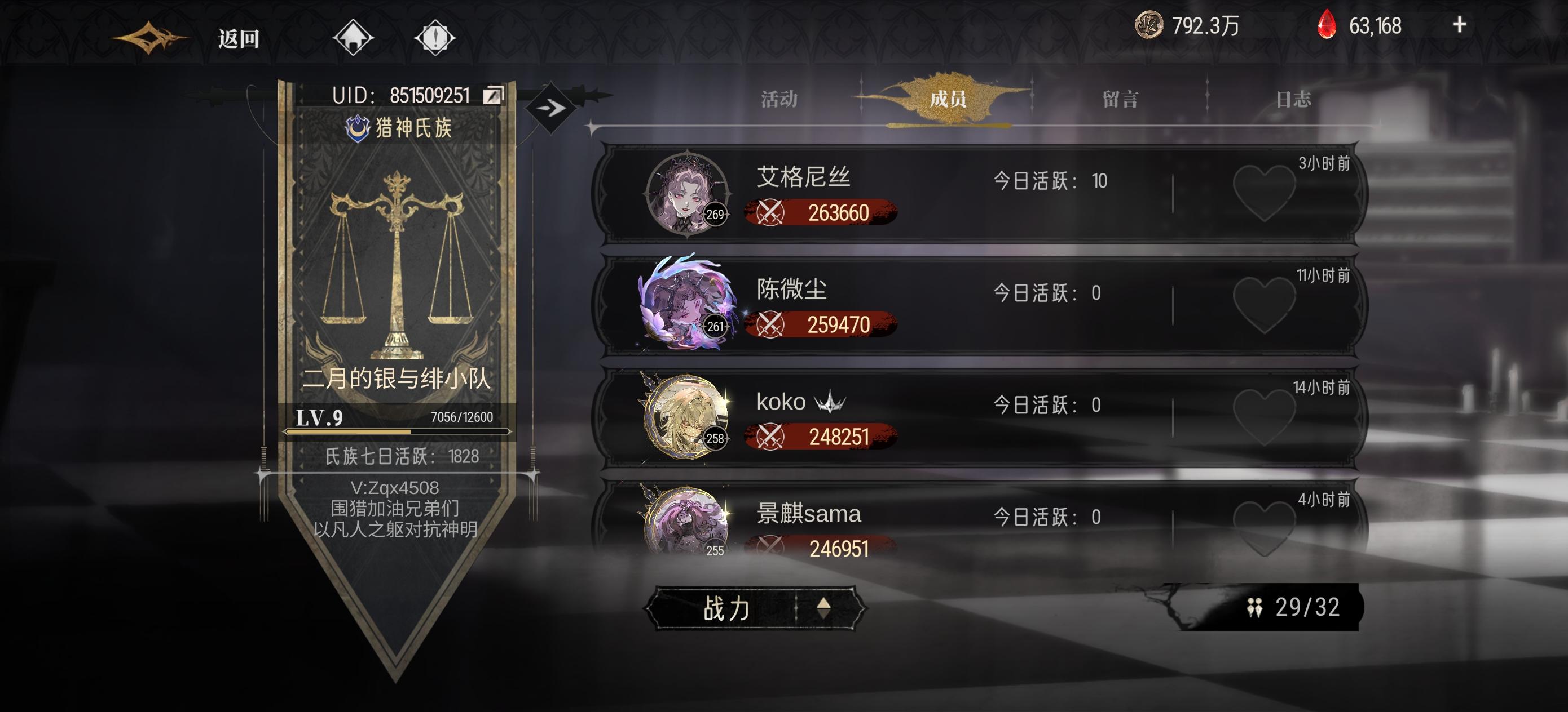 招18W以上满活跃的朋友,ID273678339#氏族 #氏族码 #银与绯 #银与绯招募