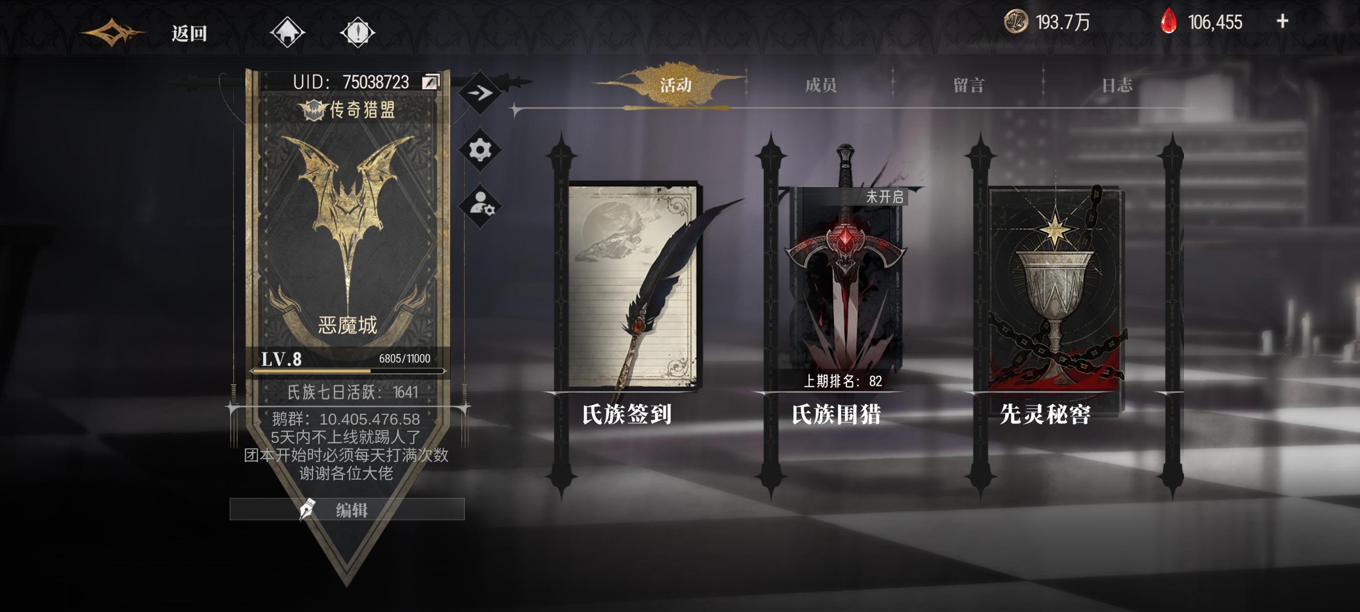 纯休闲氏族 无排刀要求无战力限制 保持活跃即可 围猎期间随便打满三刀就行 ID:75038723