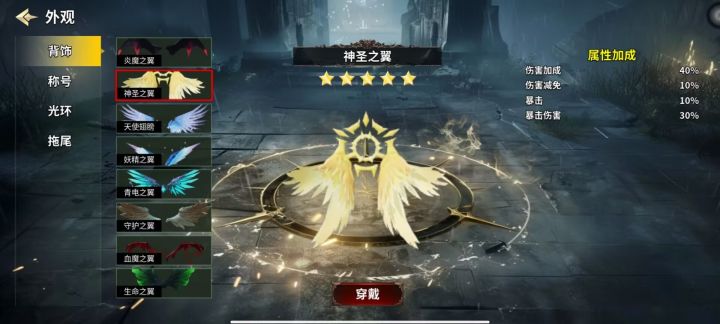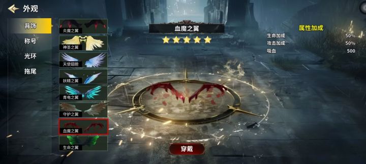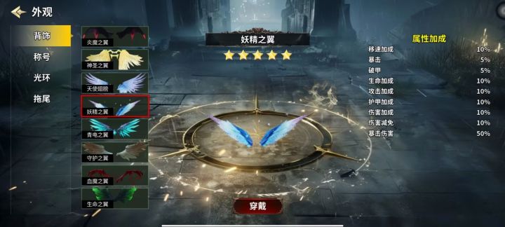 腐蚀光环,希望之光背饰这两个也是多属性的配置(单帖子图片只能放9张),其他类别都为单属性。大家可以优先选择图内带有攻击向的,为了方便大家使用,简单给各个类别做一下优先级分级。因为游戏对攻击属性需求远高于防御类所以分级优先攻击类。T0:炎魔之翼,神圣之翼,天使翅膀,妖精之翼,魔王,暴击光环,腐蚀光环T1:希望之光青电之翼,血魔之翼,天下第一,强击光环T2:其余所有皆为防御类生存类属性最后获取