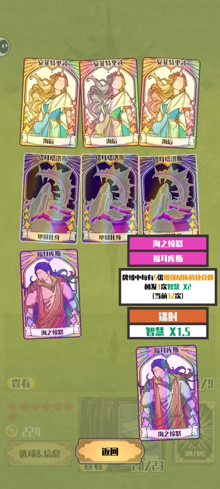 #成长毁牌加倍平均金币流 因为录屏的时候把那个波塞冬调整的位置,导致那个倍率低了很多,不然的话应该能打出10e以上的伤害。 这组牌组掺杂的流派有很多。 一、2张宙斯+1张冥河渡神:通过不断毁牌,增加宙斯的倍率以及金币,因为有两张宙斯,所以冥河渡神会触发两次,主要核心用处就是减少买牌的费用+增加宙斯倍率,这个一般要到前面的牌组成型了,才拿宙斯和冥河渡神这两张。 二、2张德墨忒尔:通过不断购买成长牌