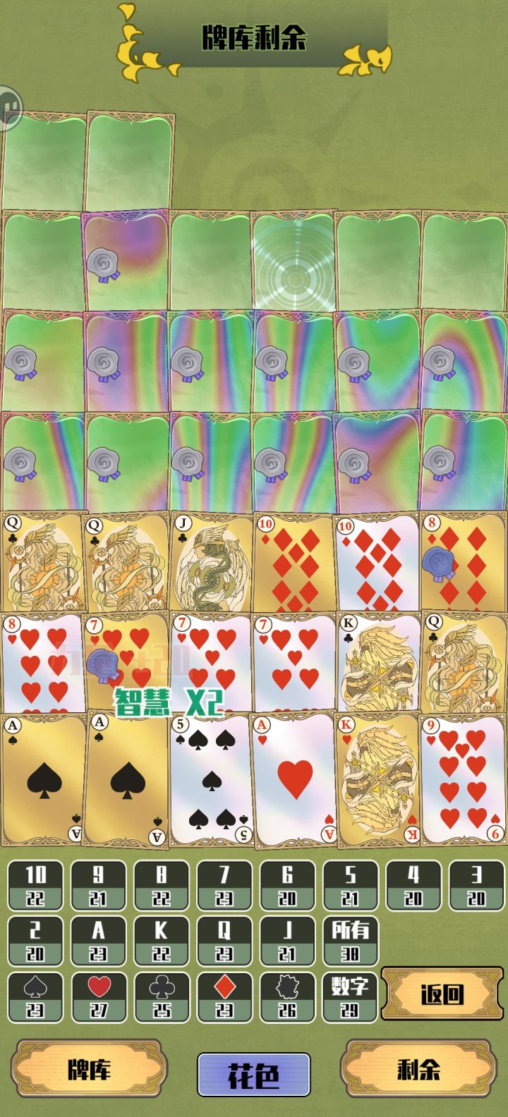 牌库推荐:(回型印记+镭射+宝石牌+红桃A/红桃K)*5+(回型印记+镭射+珍珠牌+红桃A/红桃K)*(手牌上限-5)回型印记:可以保证多触发一轮南风。镭射:额外提供1.5倍智慧。负责打出的宝石牌:(1/5概率+20智慧,1/15概率+20金币)配合克洛托可以增加提供智慧的概率,还可以看脸给点经济。留在手里的珍珠牌:增加上限额外提供*1.5智慧。红桃A/红桃K:根据不同流派和组