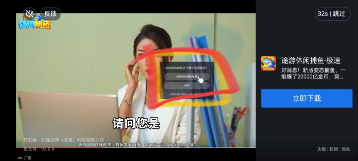 广告中故意弹出选择框!点击非法跳转打开游戏,不点击暂停倒计时延长五六秒广告时间!恶心至极!一个玩家五六秒,上万玩家得多赚多少不义之财!12321投诉起来!!!
