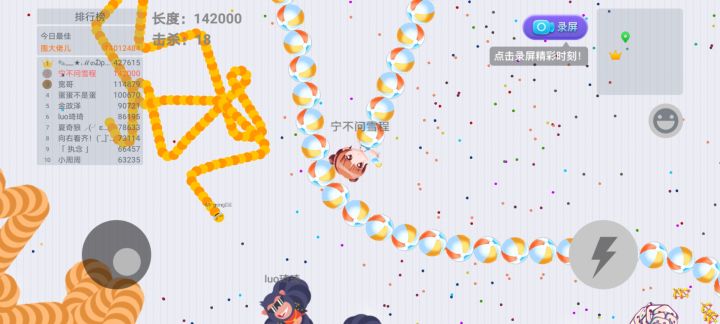 这个游戏非常适合闲暇的时候用来打发时间,游戏里,你控制的蛇的身体会随着长度的增加长大,背景也会逐渐zoom out,当你摇晃着粗大长的身体在战场上横晃的时候,随便谁都要让你三分。正是因为这种视觉上满满的充实感,让人的成就感倍增。而一但玩家失足撞死,也可以立刻重玩,化身小蛇,再次投入战斗。被击杀了根本不着急,君子报仇下局不晚,重新投入战场杀他个七进七出。当成长到一定程度时,利用加速用身体把别人团团