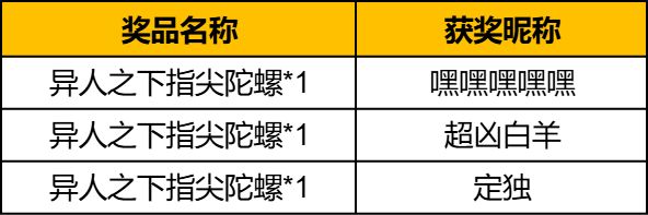 亲爱的玩家们,本次活动已经圆满结束啦,感谢大家的热情参与~现在就为大家公布本次活动的获奖名单~恭喜以上玩家!请获奖者在11月7日12点前私信版主【深圳王也(ID:675908111)】提供信息以便我们发放奖励。领奖小tips:1. 获得【京东卡】奖励的玩家请提供【接收奖励的邮箱】;2. 获得【游戏周边】奖励的玩家请提供【姓名,电话,地址】;3. 私信前请先关注版主账号【深圳王也(ID:6