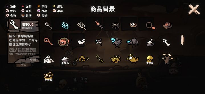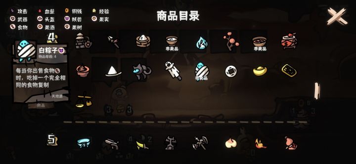 1级开局刷个训练短剑过渡,看到牛仔帽可以拿一下过渡,2级刷炒锅,角色方面老钱僧t1,看到就拿,还有回血姐,两个都是便宜实惠,3级必拿白绫,4级有鸟粪也可以顺手拿下,白绫给老钱僧下回合吊成粽子,然后白绫可以重复用,把回血姐,还有初始角色都吊成粽子,属性可以继承给粽子,然后角色买满,每个回合卖小炒肉,熬到5级,买个唢呐,就对防具没要求了,核心是武器3个炒锅,1个白绫,召唤帽子(有唢呐就可以换),老钱僧
