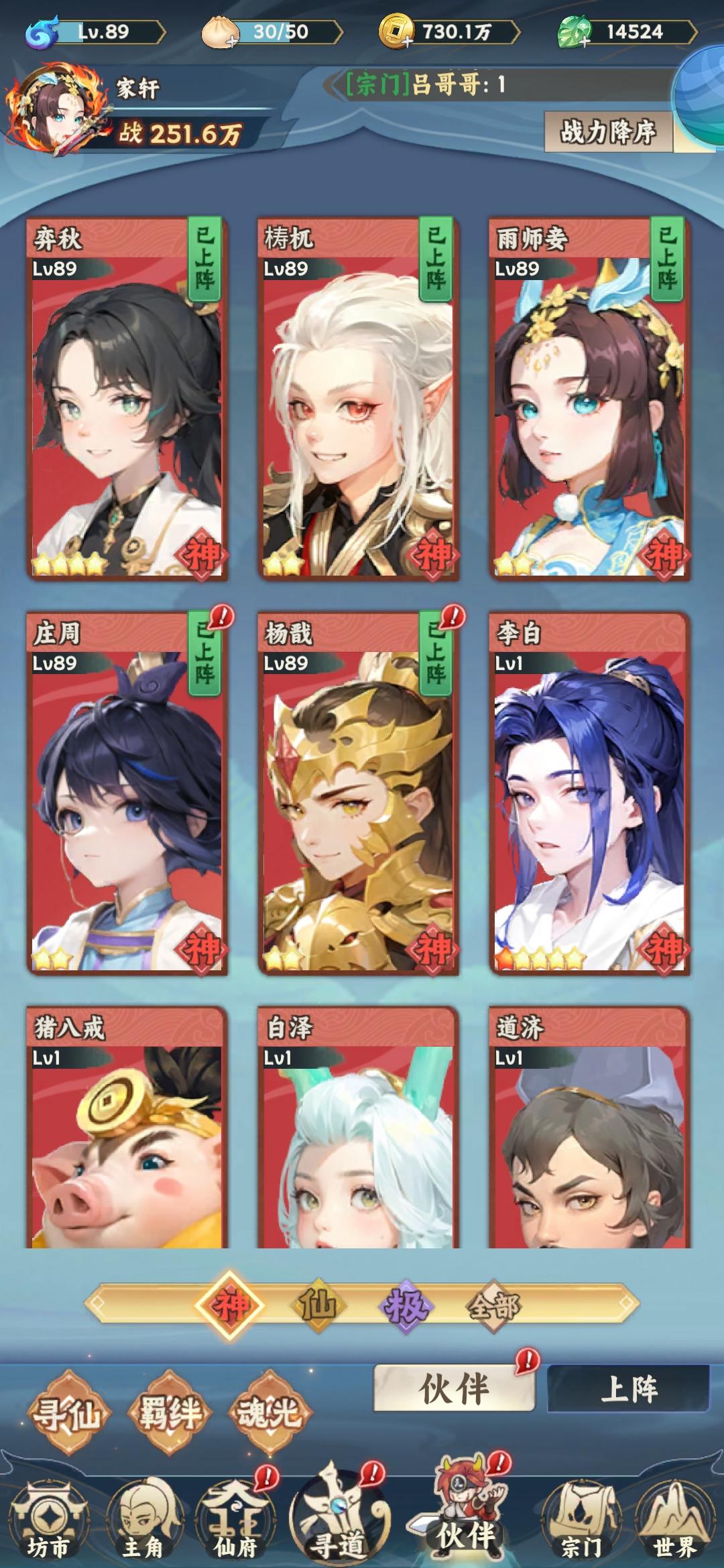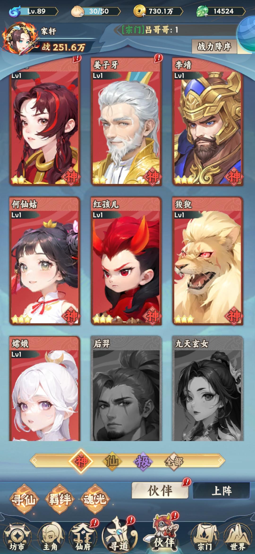 已拥有的神品伙伴