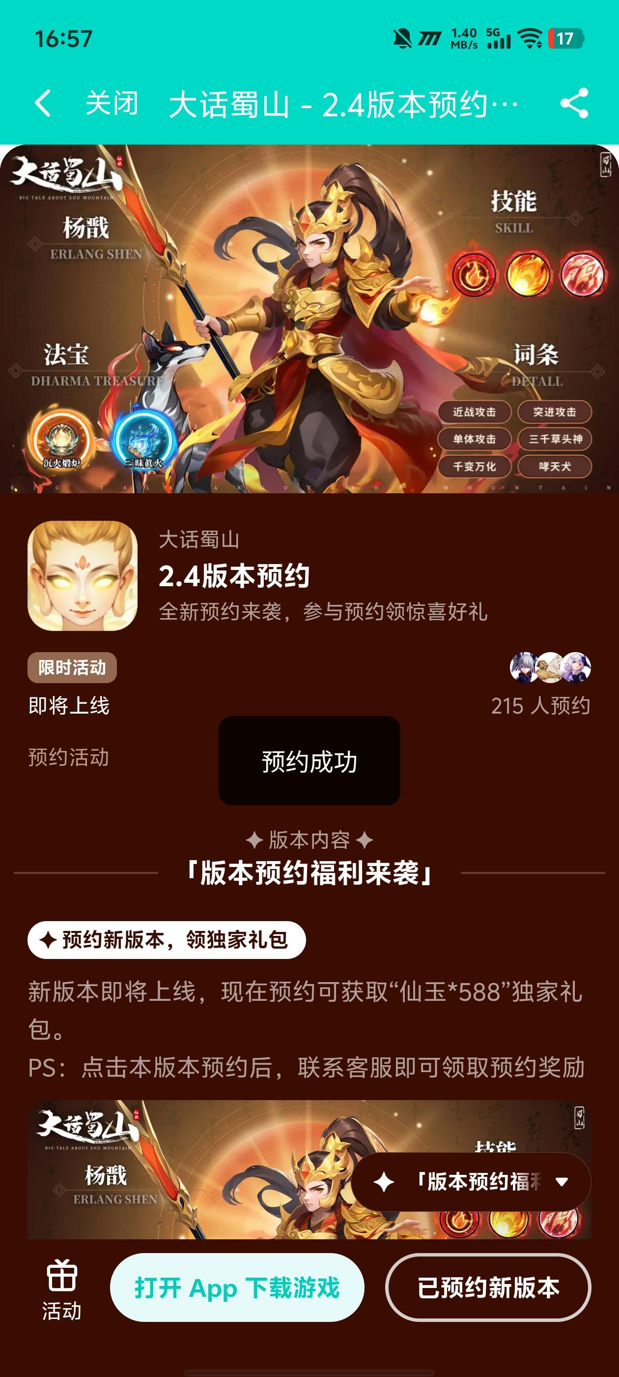 #游戏种草计划 玩法上十分丰富多样。除了主线剧情的冒险,还有各种副本、竞技玩法。玩家可以在副本中挑战强大的妖魔,获取珍贵的装备,那种战胜强敌后的成就感简直爆棚。而竞技玩法则为玩家提供了展示实力的舞台,与其他玩家一决高下,紧张刺激的战斗让人热血沸腾。 # #大话蜀山