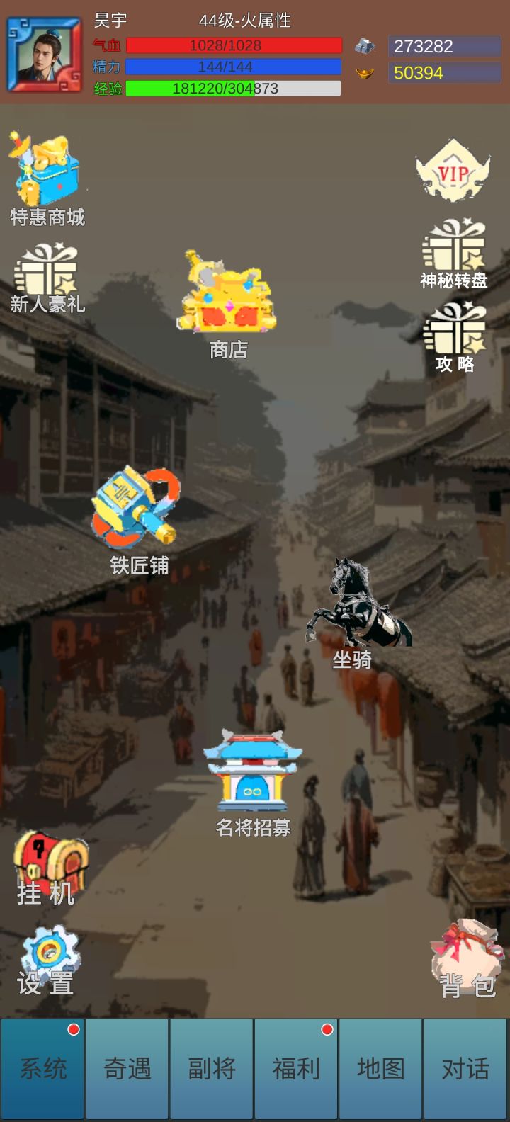玩了三天是个萌新,前期一定要选好想要培养的武将,控制输出将优先,辅助功能后期再看,个人是赵飞燕速度比关羽快一点,然后开局秒一个打,主角全体力加点,将死了不慌点招将可以很快度过前期