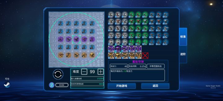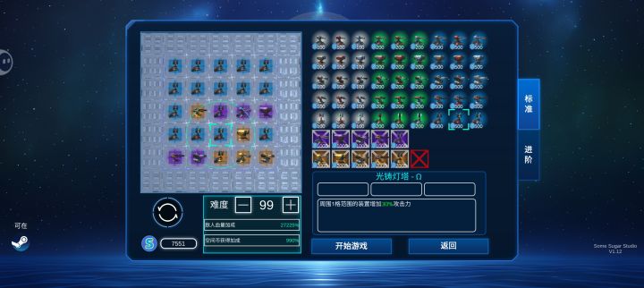 如图,火焰塔+200%伤害,声波+100%,金导弹-90%移速,雷暴对减速状态的敌人+200%伤害。这几个是核心。其他的只是增加容错。buff塔是增加在升级前的容错。增加30%伤害。然后直接2倍速,和自动升级挂机就行。自动升级升级顺序是,从上往下,从右到左。