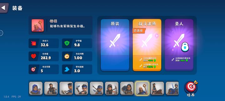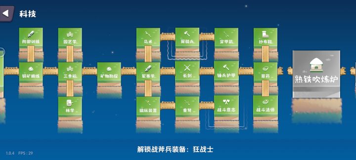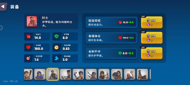 剑士,弓箭手,战锤兵、战斧兵已经解锁对应武器科技,在升级板块并没有体现。