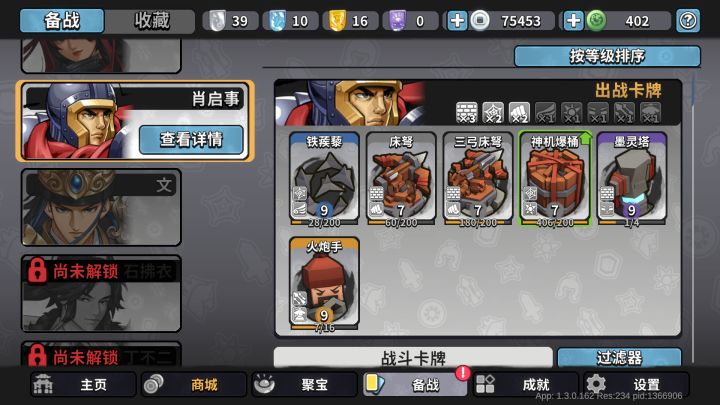 通关前准备:1.火炮手2.五个陷阱卡或防御塔卡3.最好选肖启事为领袖通关要点:1.控制领袖时在攻击弹道出来以后立即移动一小段距离即可取消攻击动作后摇,可以大幅提升领袖攻击频率;2.如果使用肖启事做领袖,则在第四天吃满利息后开始招募火炮手;3.火炮手前期将猛火油、烟花弹、烟花火药、伤害半径BUFF、攻速BUFF点满;4.后期主要输出主要靠破军阵,没有破军阵可以点灵符,数值上来以后即可