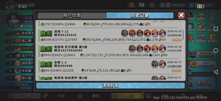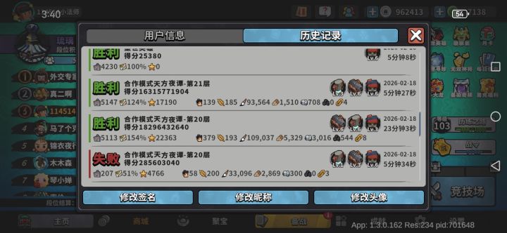 难登 合作 一百五 十八分 不如天方 单人 三层 三小时 不如天方 合作 二十一层 二十多分钟————————————————然后如果你对局中掉线了,最后显示的时间是你重连上去到结束的时间(图四)