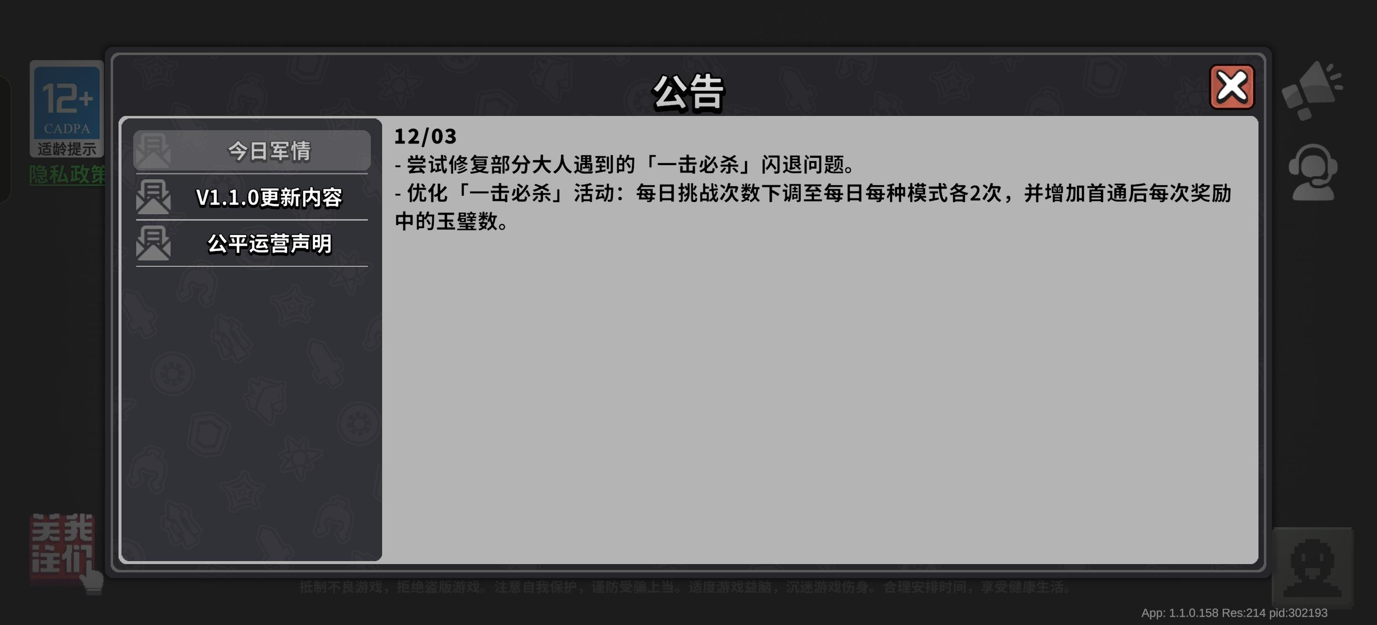 寄了,现在无论更不更新,第三把都不给东西了这么快再次登录会有强制更新补丁,把20次挑战改成2次一直不退出,每天都有20*300玉可以打