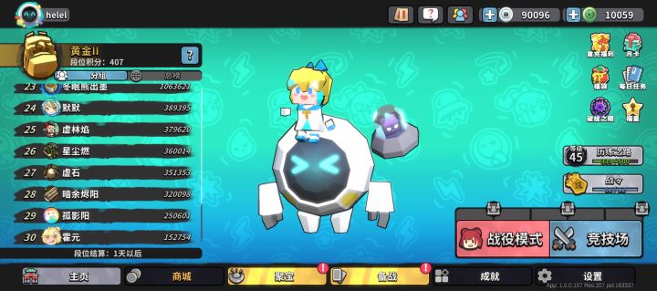 #竞技场排名机制建议 目前竞技场都在刷分,排名没什么含金量1.建议段位结算以通关层数做排名,同层数以通关难度和通关时间作先后排名2.竞技场分单人场和组队场,奖励以其中一方最高段位来结算3.增加层数奖励和名人堂