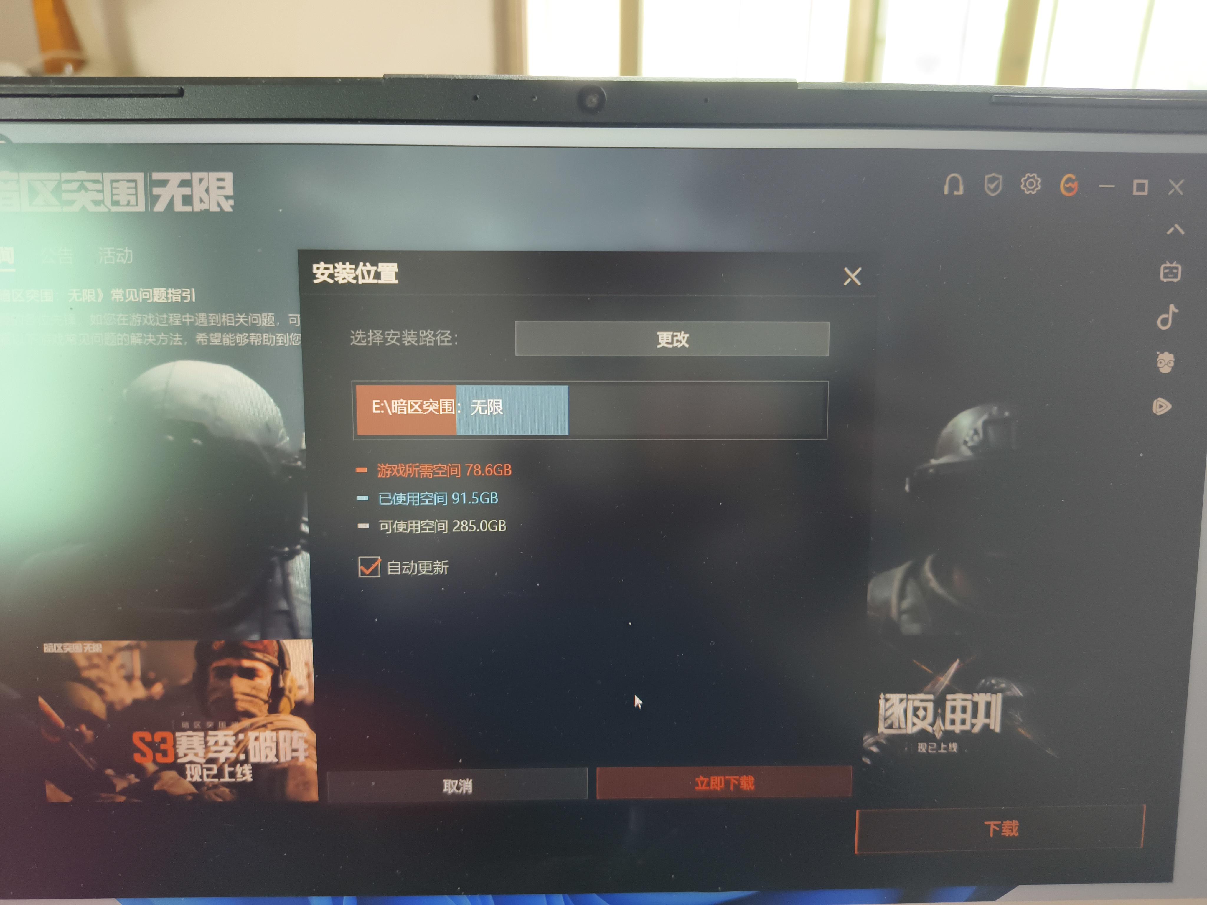 这两天下载暗区,启动器安装好后点击下载游戏就直接闪退,退出启动器了,没法下载游戏,换盘,新建文件,更新驱动都试了,还是没有