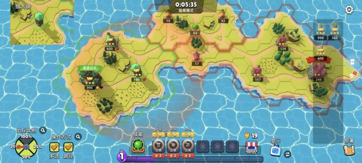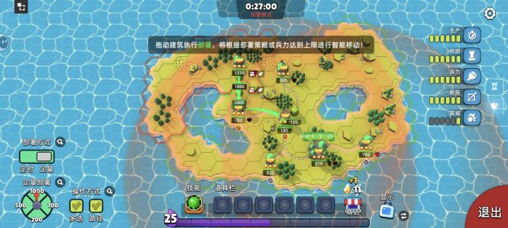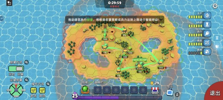 是这样的,我打了左边的电脑,准备打上边的。结果上边的电脑被右边的打败了,但是打败的瞬间,上边的电脑有残余兵正在往右边电脑大本营前进,没有消失,然后右边的被上边的干掉了,我就莫名其妙赢了