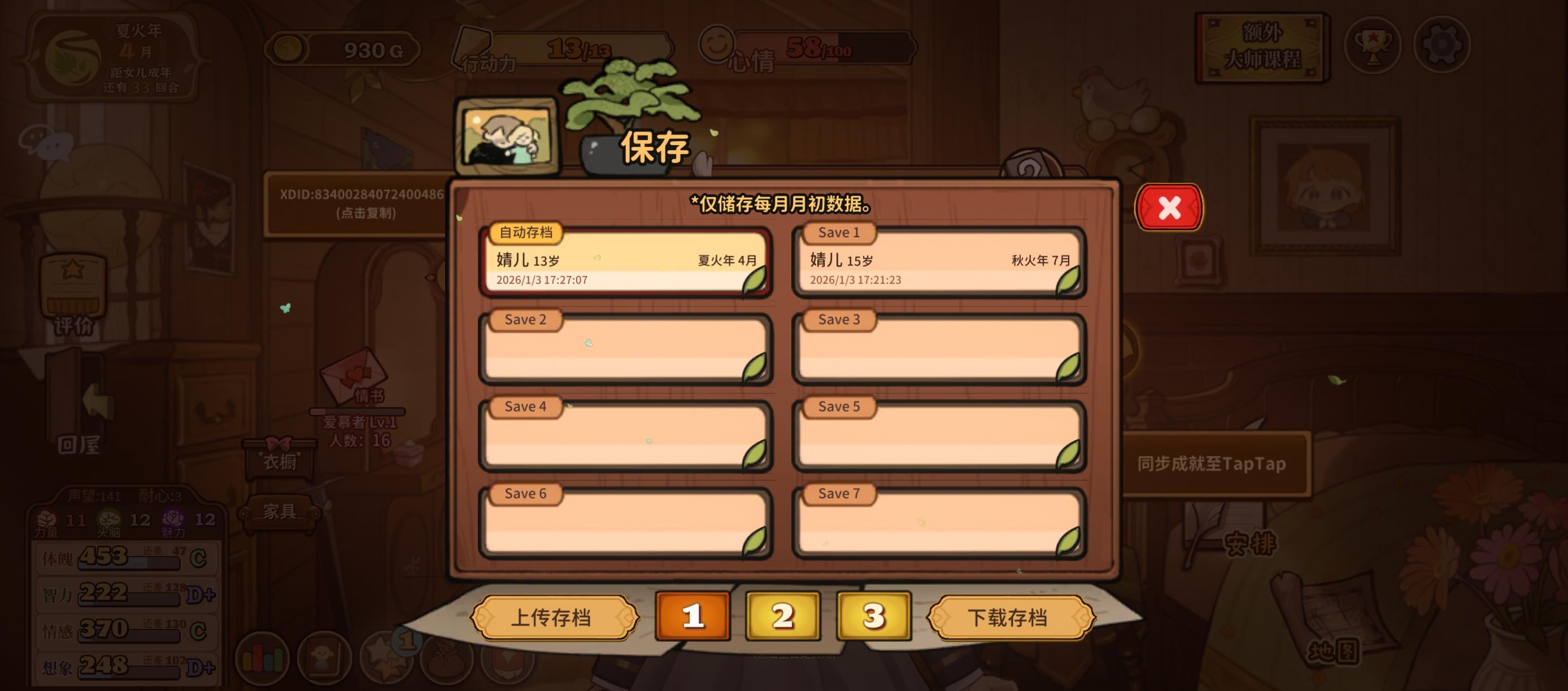 我在15岁那个档里面下载了13岁的云档,然后手动在save1存正在玩的15岁的档。结果现在15岁的档卡没了,点save1写的15岁,进去却的是13岁的档。玩了几个小时的档啊就这么卡没了?这什么bug我真红温了,想加个bug群结果全满了,给不给反馈了?