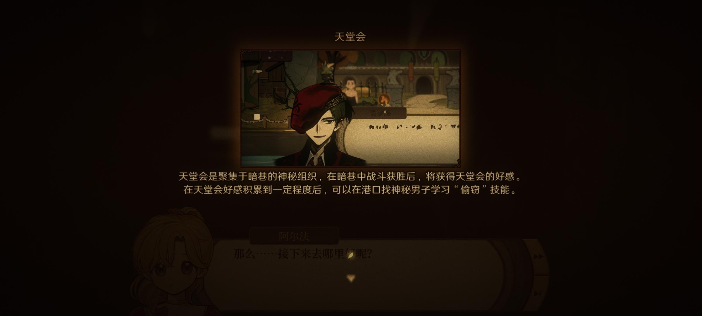 描述上写的是积攒天堂会的好感之后才会刷出来偷窃技能商人,但是游戏中是只要暗巷刷出来技能商人就顺便着一块出来了不需要积攒天堂会好感度