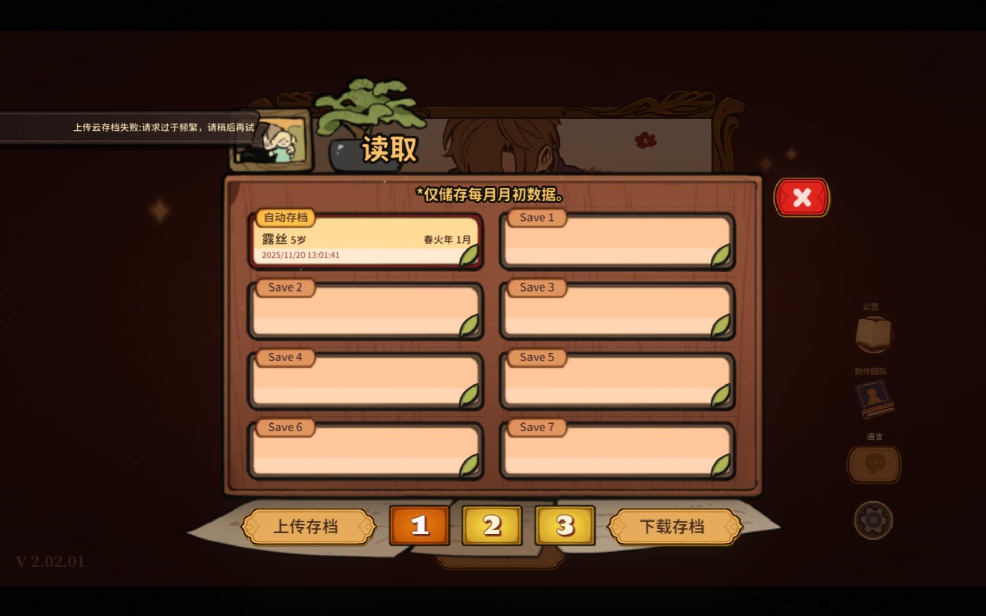 这个游戏存档好像有点问题,我明明缓存了进度,下线后再上线玩就变其他岁数了