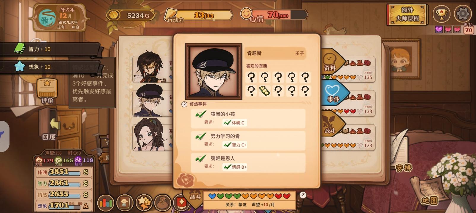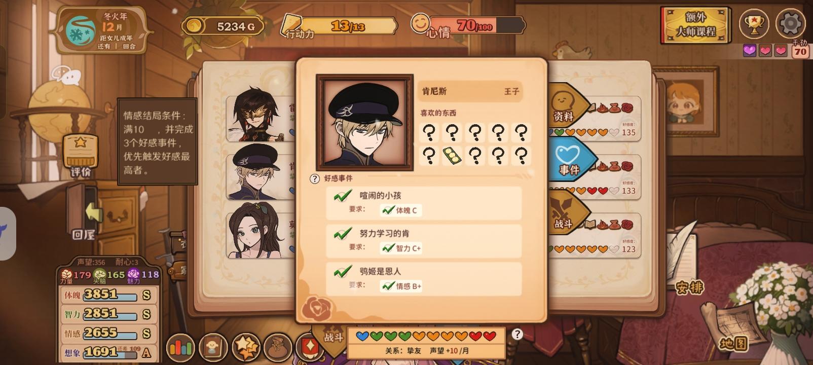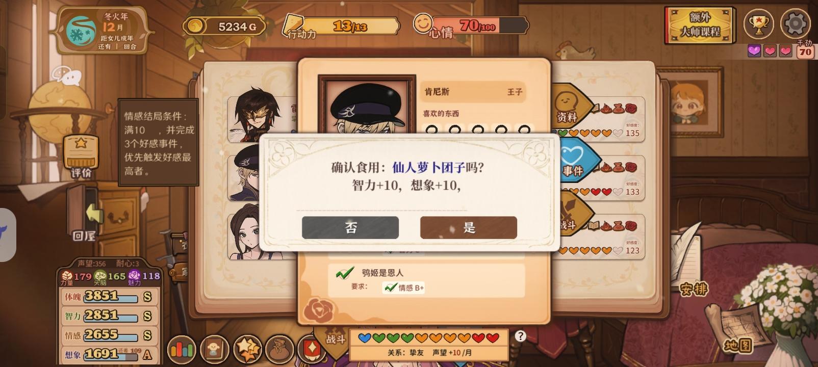 说点大家担心的问题第一个,刷化肥没有修改,可以正常刷第二个,不跟铁匠对话是不会跟铁匠的儿子结婚的关于bug:①舞会很多角色的表情会错位(看P4)②很多地方都闪回,已经过了的剧情,下个画面出现之后,上一个画面会再出现一下③UI错版,P5可见#火山的女儿再度重逢