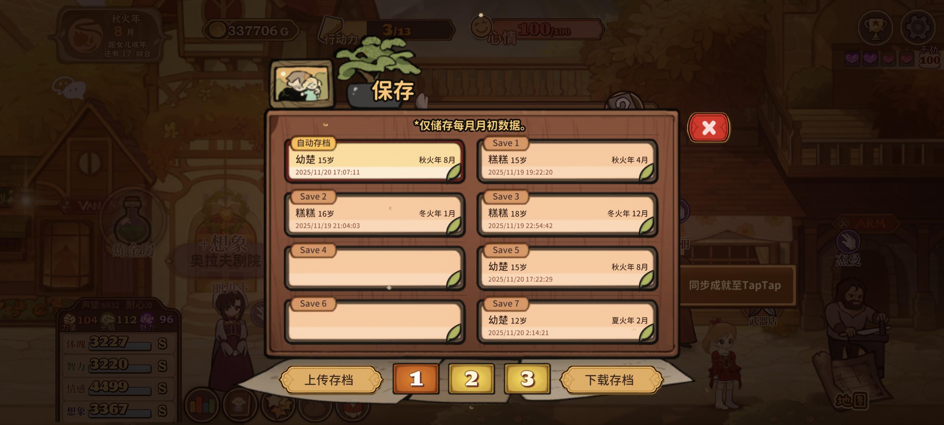 各位大佬,救救孩子吧。这游戏不能随时储存吗?我每次进去都回到月初了?