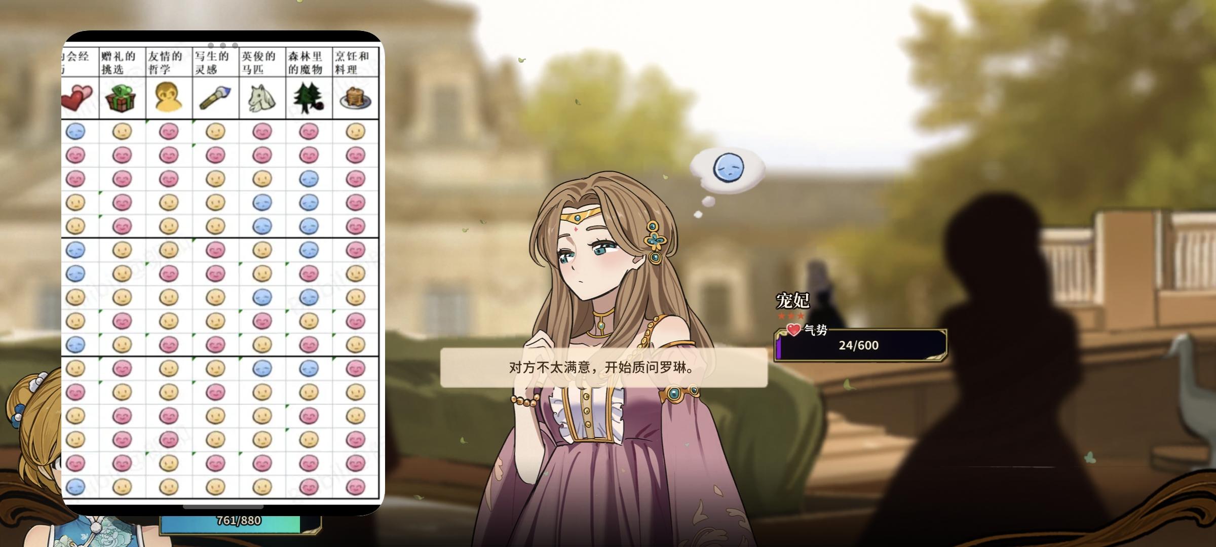 做了攻略帖,关于舞会NPC喜好的选项,宠妃的料理选项,结果是不一样的。很多选项都对不上,是出bug了吗?还是官方设置的是这样?#火山的女儿再度重逢 二编:原本是原来的攻略图很多人反馈说不准,有宝子说舞会宠妃的料理选项是“兴致缺缺”(就是小蓝脸P4),我就想重做一次。游戏时间是秋火年12月,服装舞会期间(P2),做的过程中正好碰到这个选项,但我这边显示的是小黄脸(P3),做完攻略就发到贴子里了
