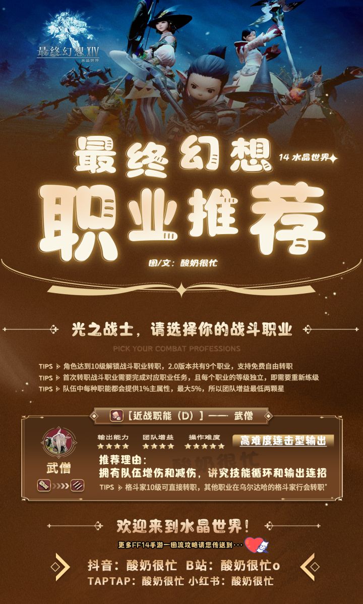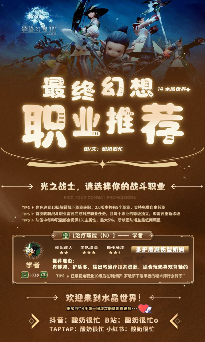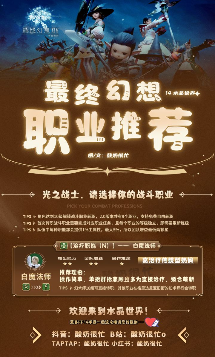 萌新党如何选择职业,每个职业的特点和适合人群都有详细介绍,需要的小伙伴们可以自取哦 #最终幻想14水晶世界 #ff14手游 #最终幻想14手游619不删档上线