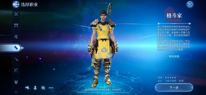 一、职业简介:武僧是装备格斗武器的进攻近战职业,攻击速度快,擅长以疾风骤雨般的攻势击溃敌人,是有一定上手难度的近战职业。武僧转职前为格斗家,想以武僧开始游戏的话,可以在创建角色时选择格斗家。二、职业任务指引和装备获取:如果已经选择了其他职业作为初始职业,可以在完成主线任务”海之都与森之都”后,在沙之都乌尔达哈·现世回廊的格斗家行会进行转职。在角色界面可以查看格斗家行会的位置,点击以太之光广场