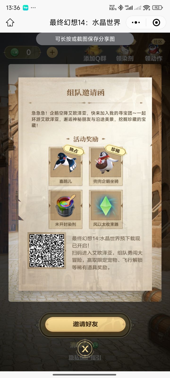 【最终幻想14:水晶世界】输入邀请码【VcKGxB8I】与我绑定,共同探险艾欧泽亚大陆吧!#最终幻想14水晶世界组队 #游戏日常