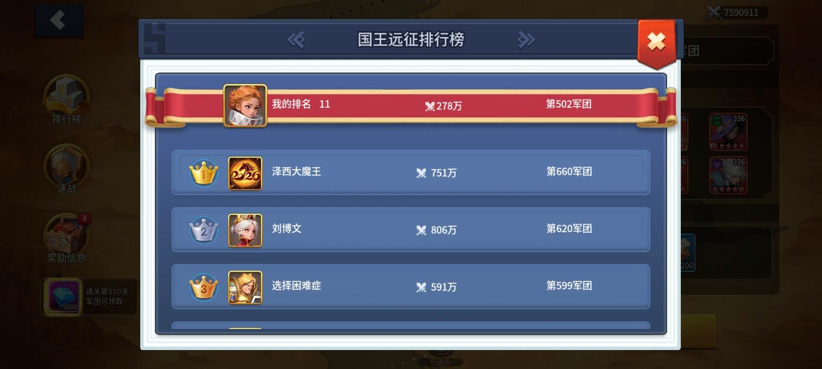 远征50次 排位11 今天到503军团