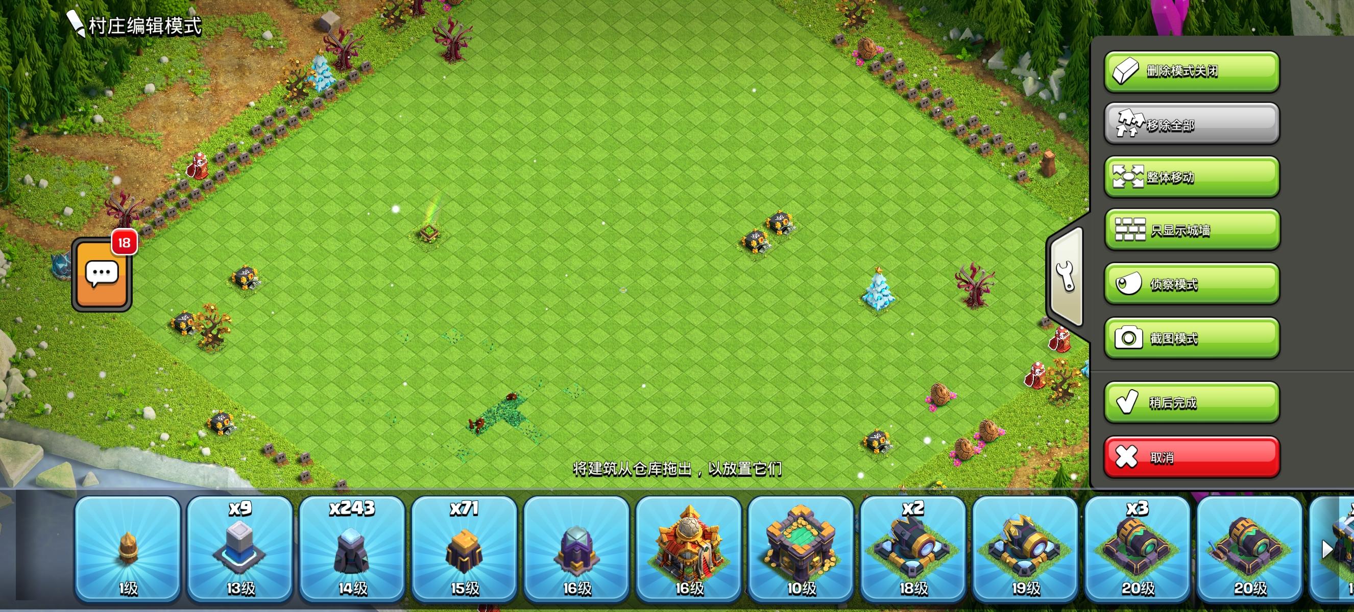 城市布局调整太繁琐,能否增加临时空间用于调整,建议参考部落冲突,可保存多重布局方案!!!