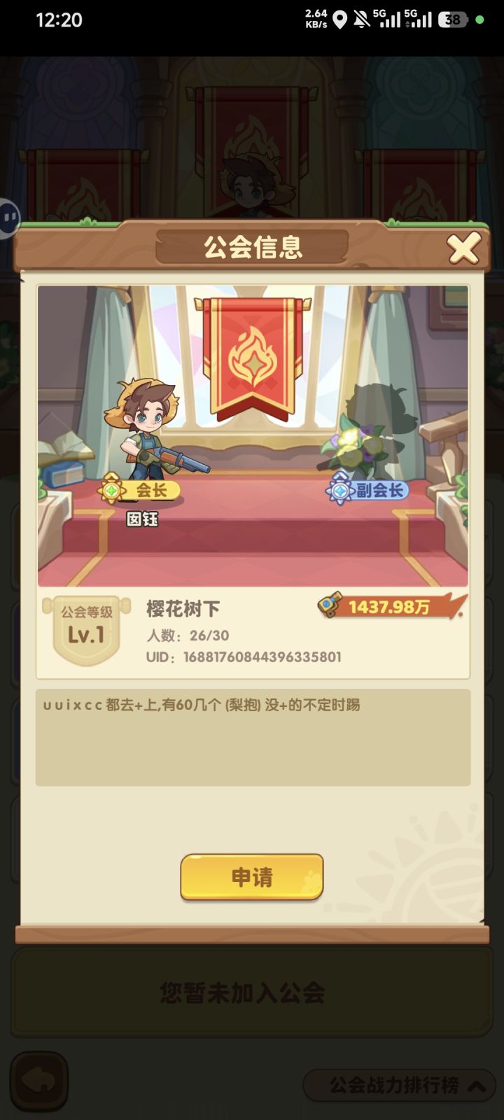 新区加公会,早上起来发现无故被踢了,战力活跃值都不低,然后发现公会公告要求加会长微信,不加就踢,那这个游戏没法玩了,拜拜
