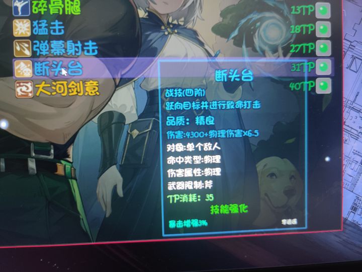 行刑官铠甲的断头台技能加成没有实装,伤害加成和TP减少都没有