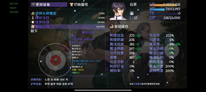使用剑双攻加20,只加了物攻,魔攻没见着