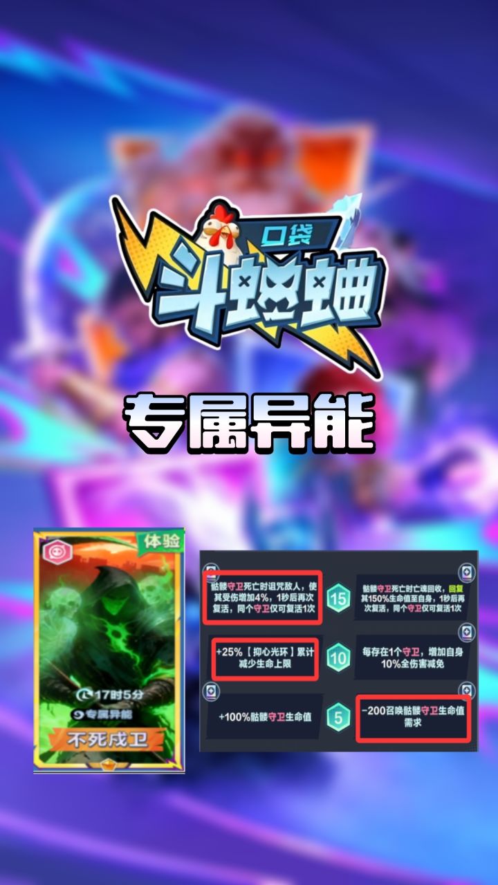 我是抖音斗蛐蛐主播:十三帝 本期来给大家分享一下S1BEAT版本新理解 不死戌卫·死灵法师·乌尔贡首先我一直不认为这个英雄要去主守卫 但是我不否认主守卫的死灵的强度 因为守卫流这个流派强这个英雄的被动讲的非常清楚是需要主动对敌人造成伤害主守卫一旦守卫被秒 很有可能一点伤害都掏不出来,速度快的对局高血量的守卫也会卡小守卫的格子 从而浪费的思路增伤的天赋所以我推荐大家也可以试试这种玩法 #口