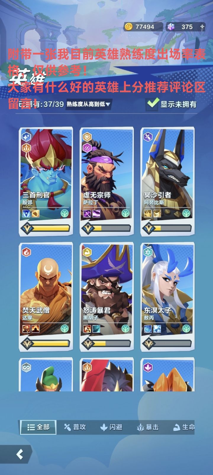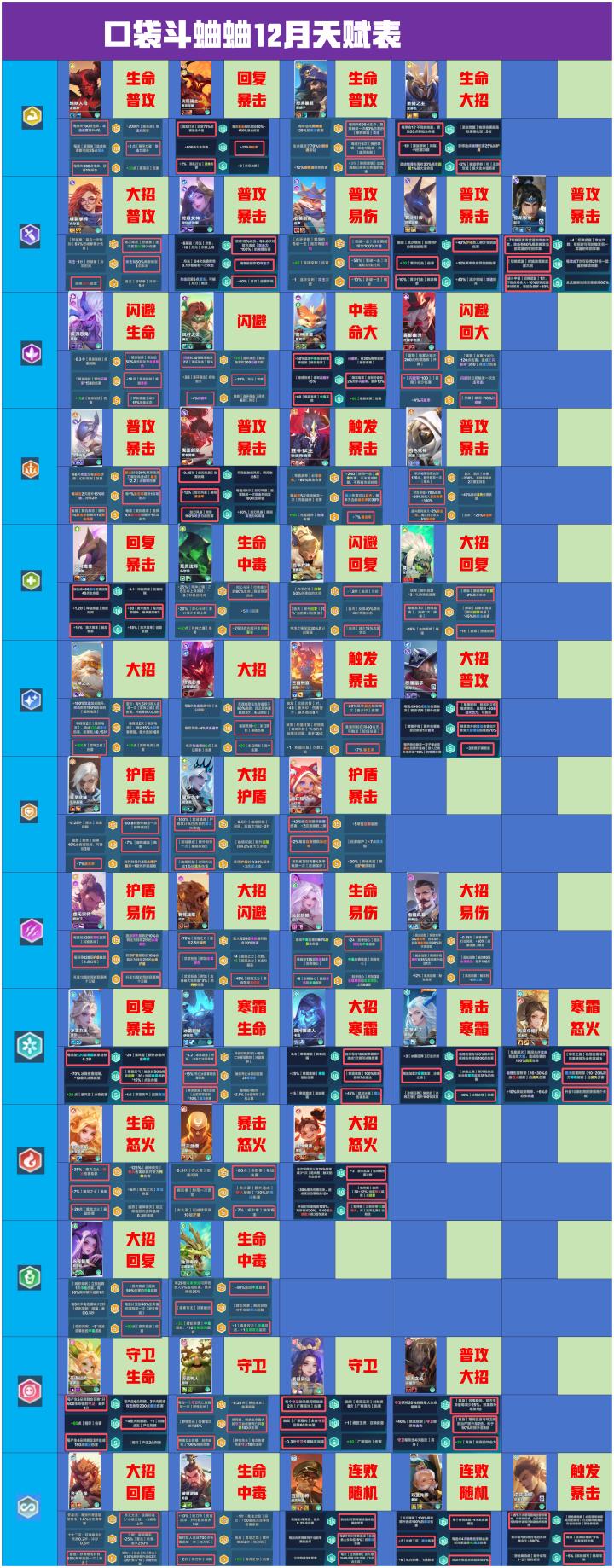 12月最新英雄(包含异能)强度表 我是dy主播:晴天 这个表格主要给新入坑萌新推荐强势英雄上分必备表格跟你们心里英雄梯度排行有异议的可以评论区讨论#口袋斗蛐蛐 #游戏攻略 #发现好游戏