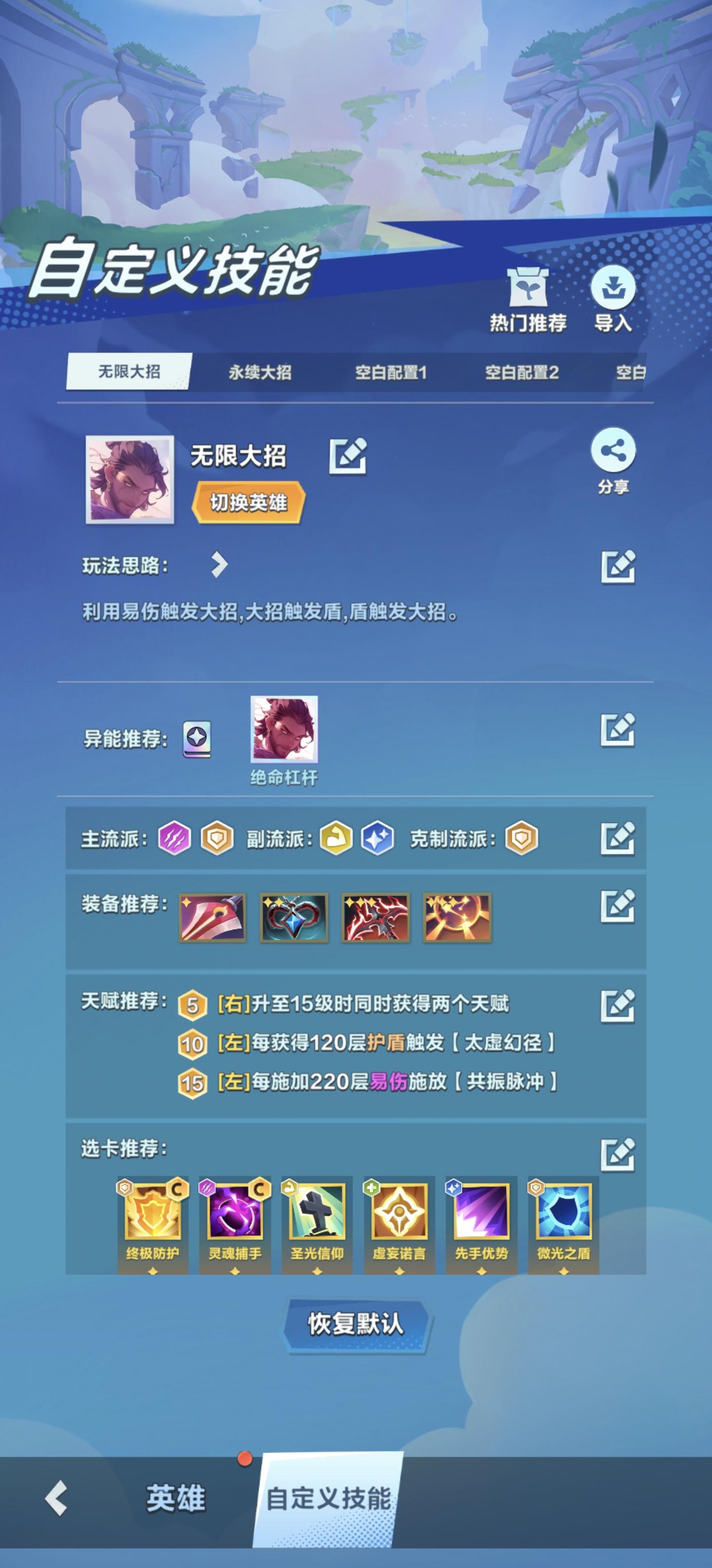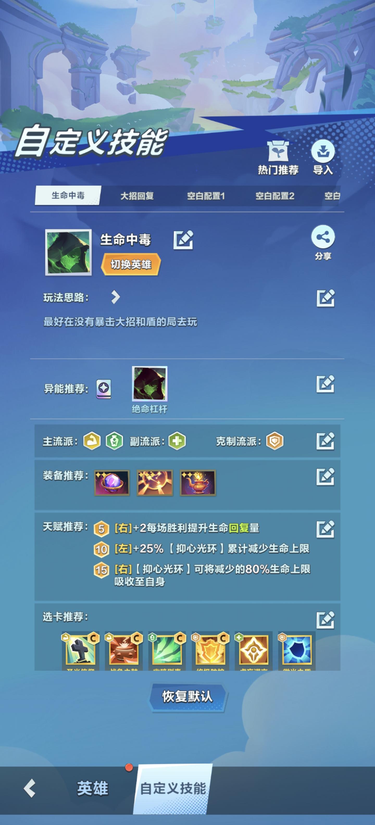 这个版本尽量去玩生命就行,失去了引擎,很多英雄少了爆发。特定的局就是强的可怕。分享码在评论区。