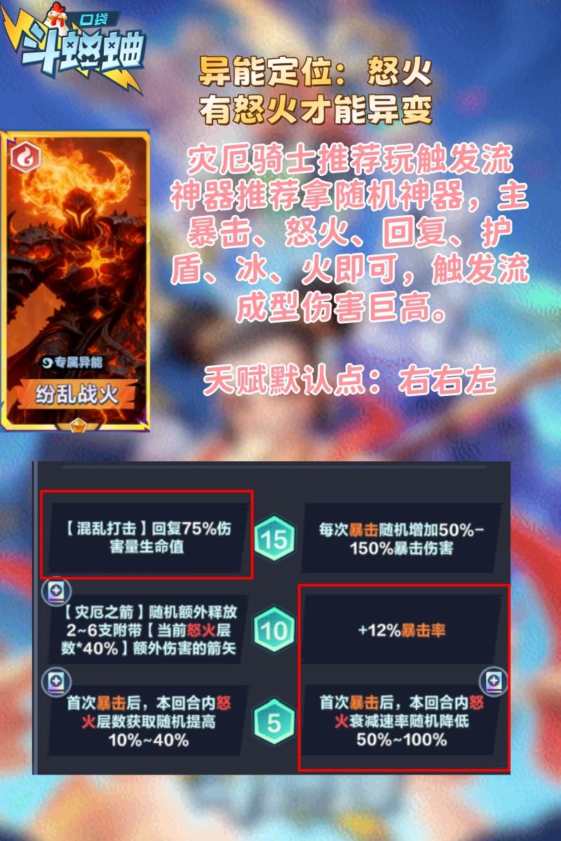 抖音晴天###堂吉诃德###异变·触发流@@@@触发暴击后可以触发被动,配合15级天赋可以触发回复@@@@灾厄骑士推荐连败起手,到8回合拿到俩神器启动,主暴击然后随机即可,千万别去D卡,触发流就是要猛猛随机上限才高,紫卡只要法爆以及魔法、物理伤害的卡才手动拿,越随机越强,100金币随机才是硬道理。###GwABAQMUAAAaOCkMEDMaLzQnAAAAAAAAAAAAAAAAAAAAAAAA
