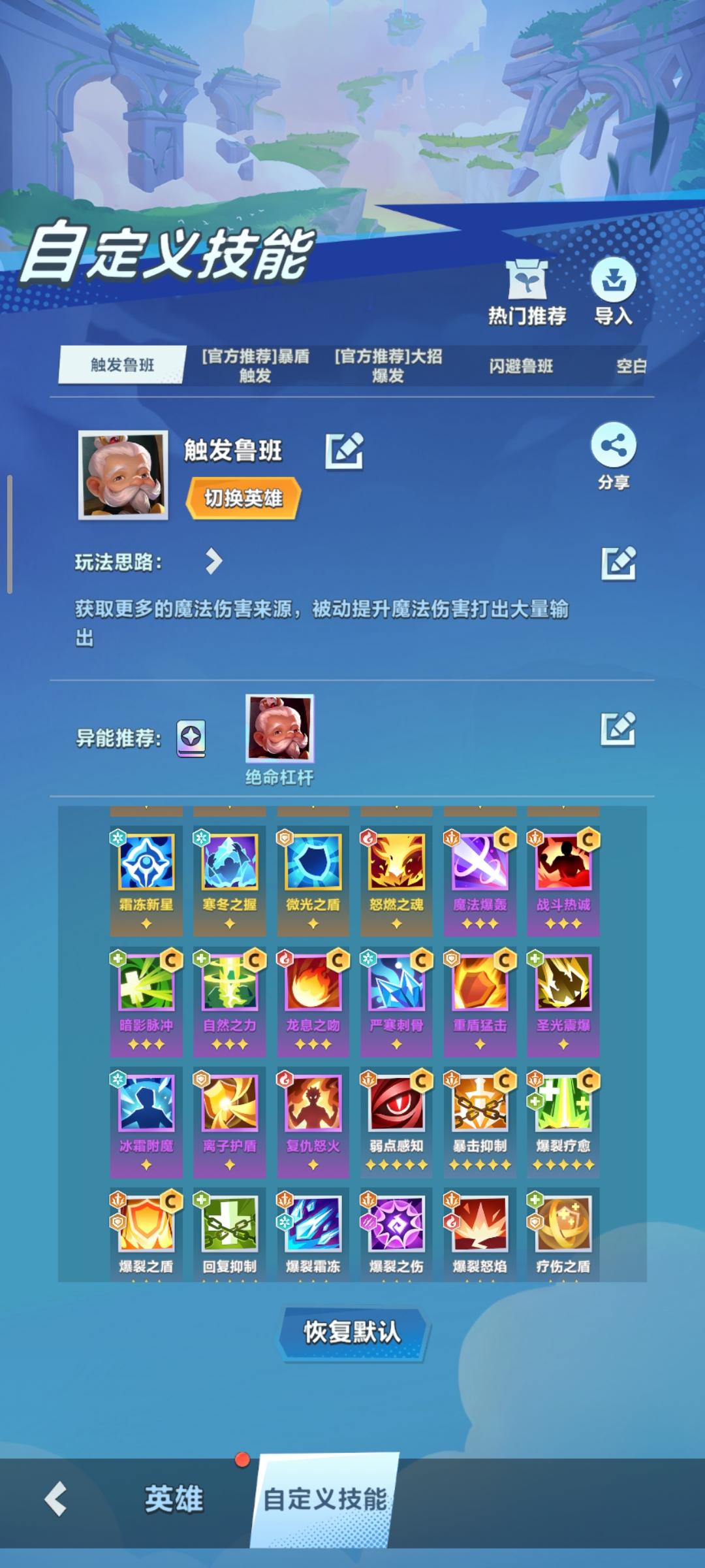 8回合启动,根据当前流派来抉择怎么拿牌! 无闪无爆以生命流派为主拉触发。 有爆无闪以回复或者护盾、冰、火为主 有闪避有毒和易伤可以生命毒,没有毒、易伤主生命副闪避! 克制方法:鲁班伤害来源主要是魔法触发最怕闪避!