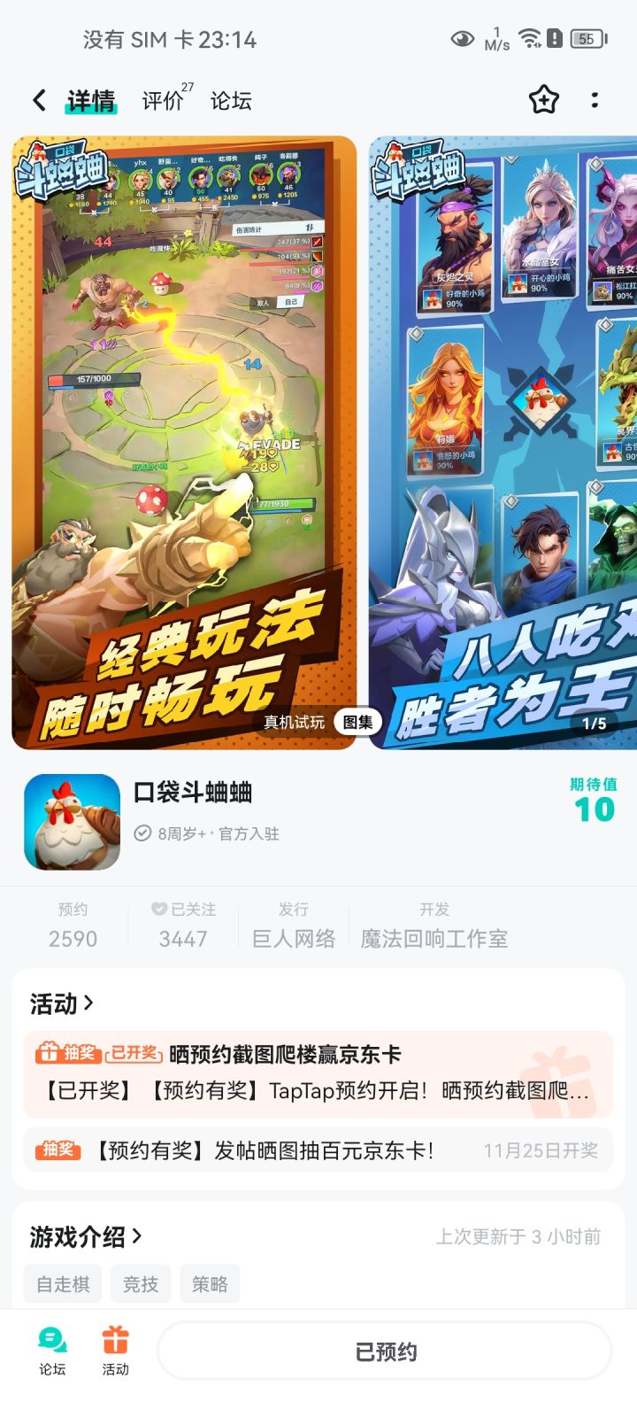 【已开奖】晒出【口袋斗蛐蛐】预约截图,赢取京东卡!