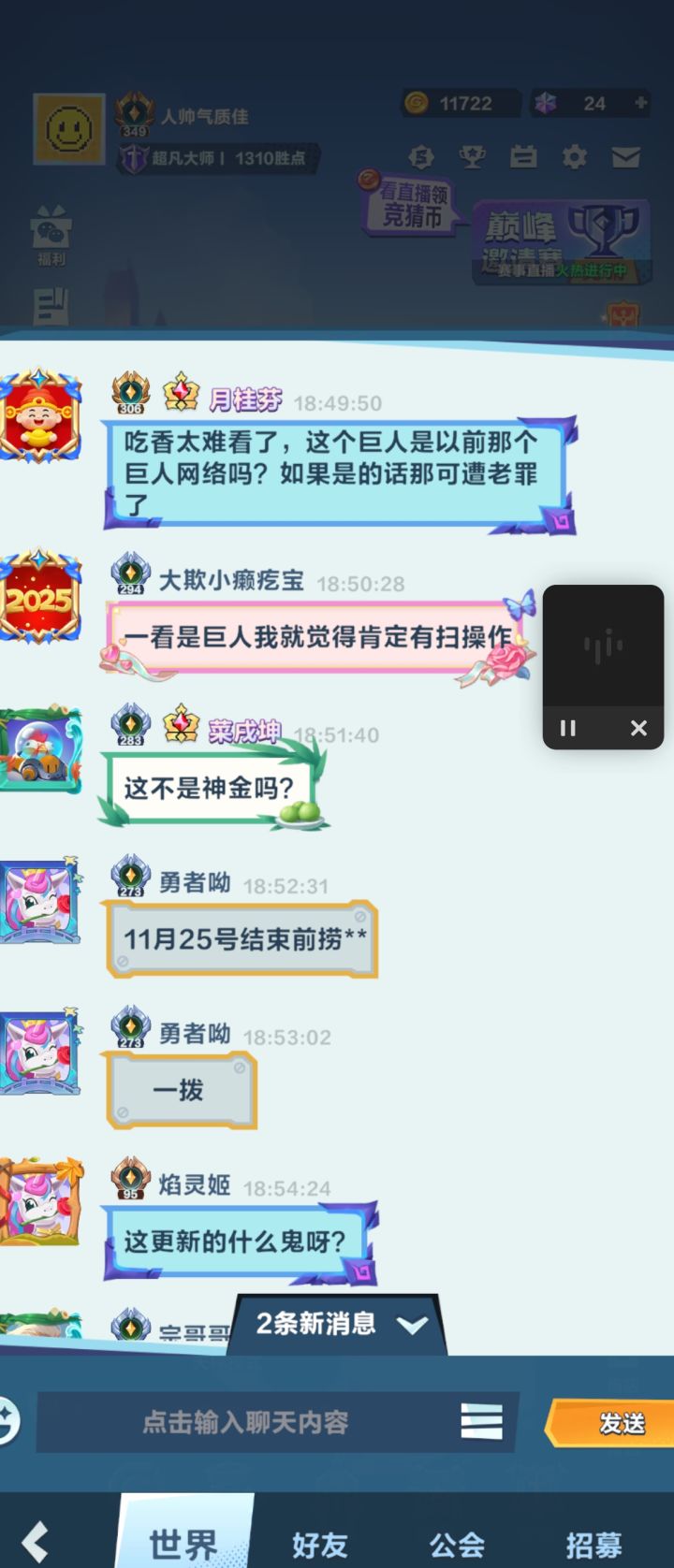 亲爱的召唤师:为了给大家带来更好的游戏体验,我们将于11月07日03:00至06:00进行版本更新,更新中将无法登录服务器。更新时间:11月07日03:00至06:00(具体时间以实际为准)更新方式:停服更新更新范围:全服更新补偿:200金币天梯段位分结算方式升级为进一步优化段位评分的公平性与激励性,我们正式推出全新评分体系,让每局表现都被合理衡量,每步进阶都更有成就感!最终段位得