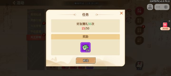 天工开物 好友赠送50次 整个区就剩下5个人 又不让添加已经合区的人为好友 这任务咋完成啊 #游戏杂谈 #浅评一下 #非凡仙途