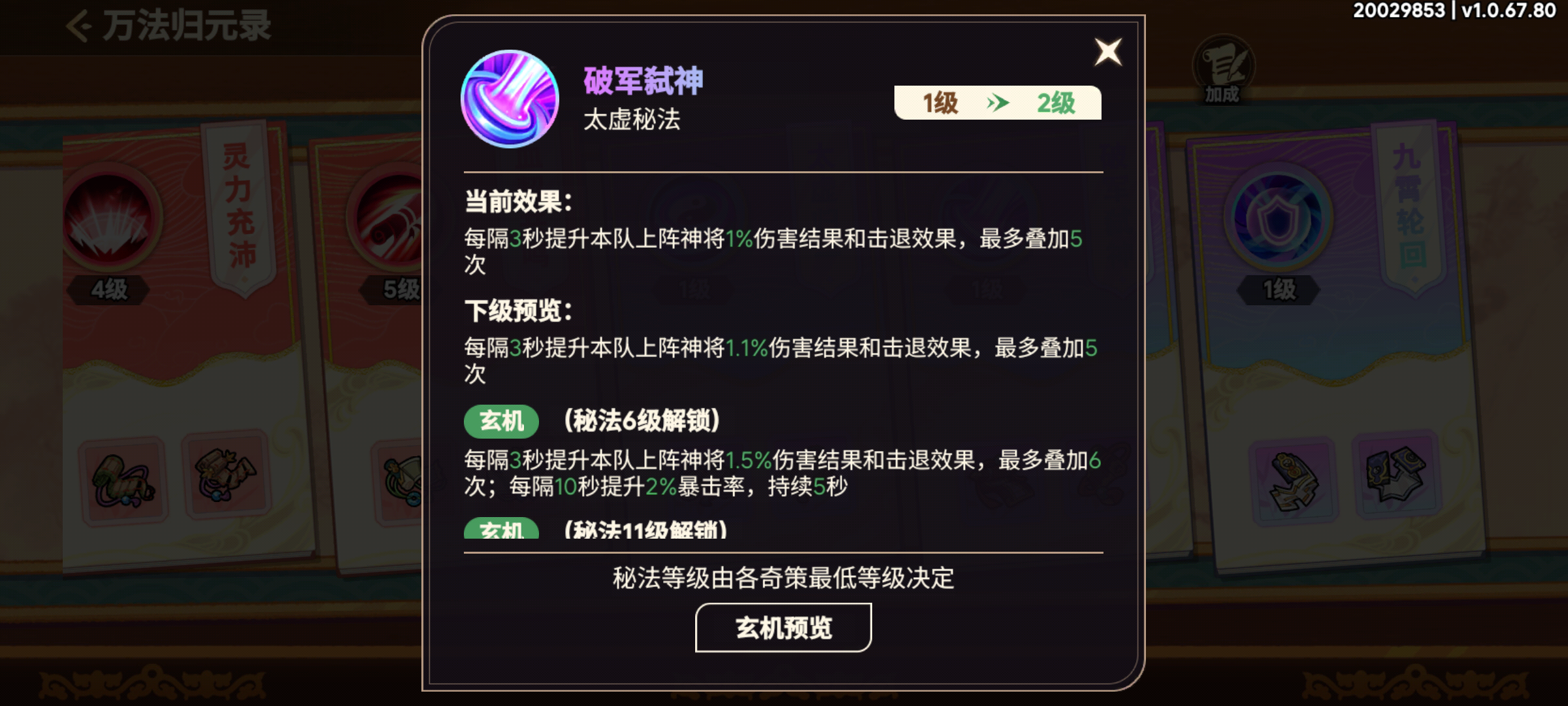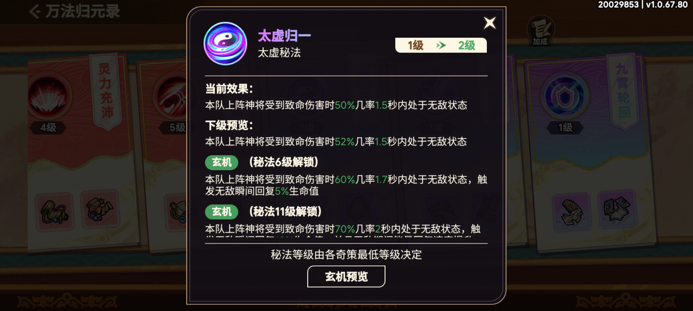 昵称:大光明区服:121区ID:20029853各位道友好,我是大光明!最近我终于集齐3大彩色秘法,非常高兴,今天把这份避坑版秘法搭配指南甩给你们—全是能直接抄作业的干货,看完少走80%弯路!一、秘法本质:四类定生死,太虚是答案秘法分天象、地灵、太虚、璇玑四大类,作用覆盖生存、输出、控制、辅助,相当于队伍的“隐形骨架”。核心逻辑:太虚系是当前版本突破战力的钥匙(爆发叠加+绝境防护),其他
