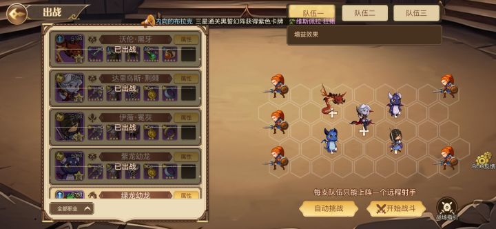 这应该是比较困扰玩家的一个精英关卡了,苍狼的攻击很高,并且带连击,相信有不少玩家都卡在这里,今天就给大家分享一个通关的攻略(不过还是得看些运气成份的[表情_斜眼笑]): 首先,我的上阵英雄,都是47级,并且穿戴的紫色装备,战术中的力量和体制都点满,暴击和闪避自行选择,不过闪避真是关键时刻能救命的[表情_叹气]。 战斗中,由于我方战位都是靠中,没法保护射手,所以要尽可能的将我们所有角色聚集,尽可能的