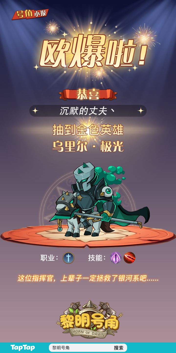 【号角小报】恭喜@咚咚恰 打造6星力量号角