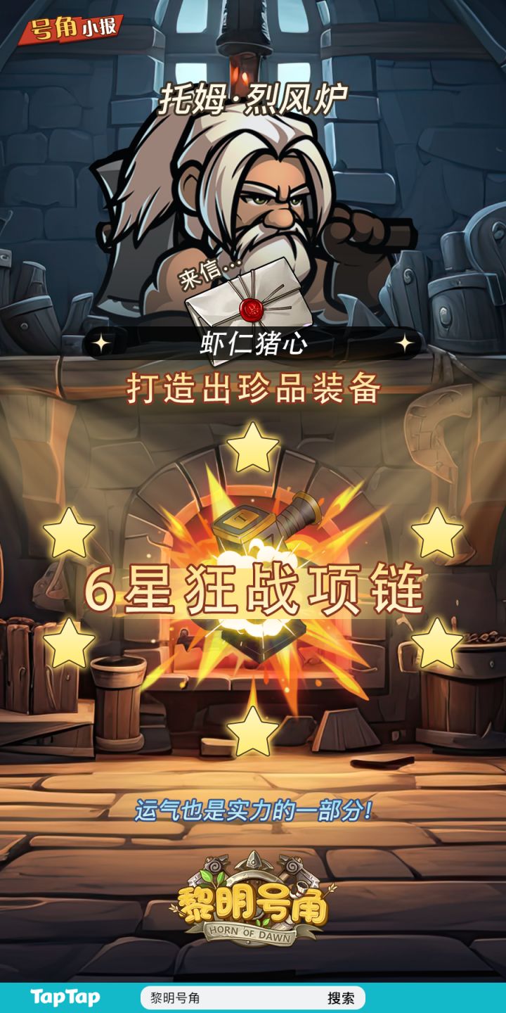 【号角小报】恭喜@风大帅 打造6星武器!!