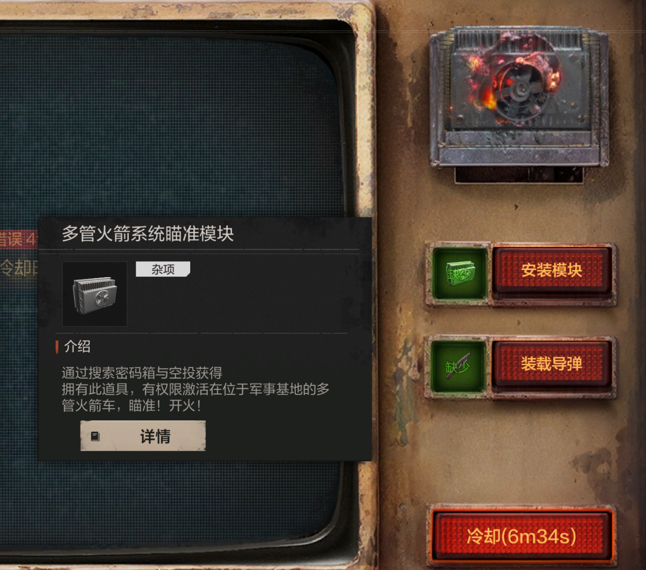 《失控进化》军事基地发射车全攻略:获取、启动到实战的制霸指南在失控进化中,学会使用多管火箭车能够速推别人的家,防止翻车。发射车位于军事基地:一、战前准备:物资与装备清单1. 核心道具:必须携带多管火箭系统瞄准模块(启动火箭车的关键)和多管火箭弹(建议至少6发,1个瞄准模块可支持发射12发)。瞄准模块与火箭弹可从红卡房内的板条箱中搜寻获取。 2. 武器弹药:配