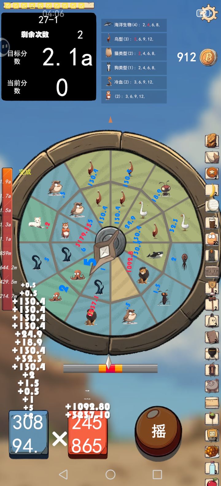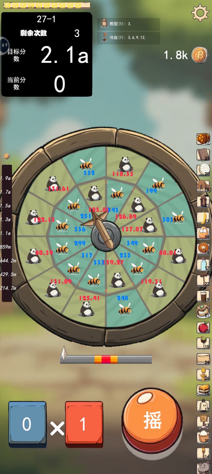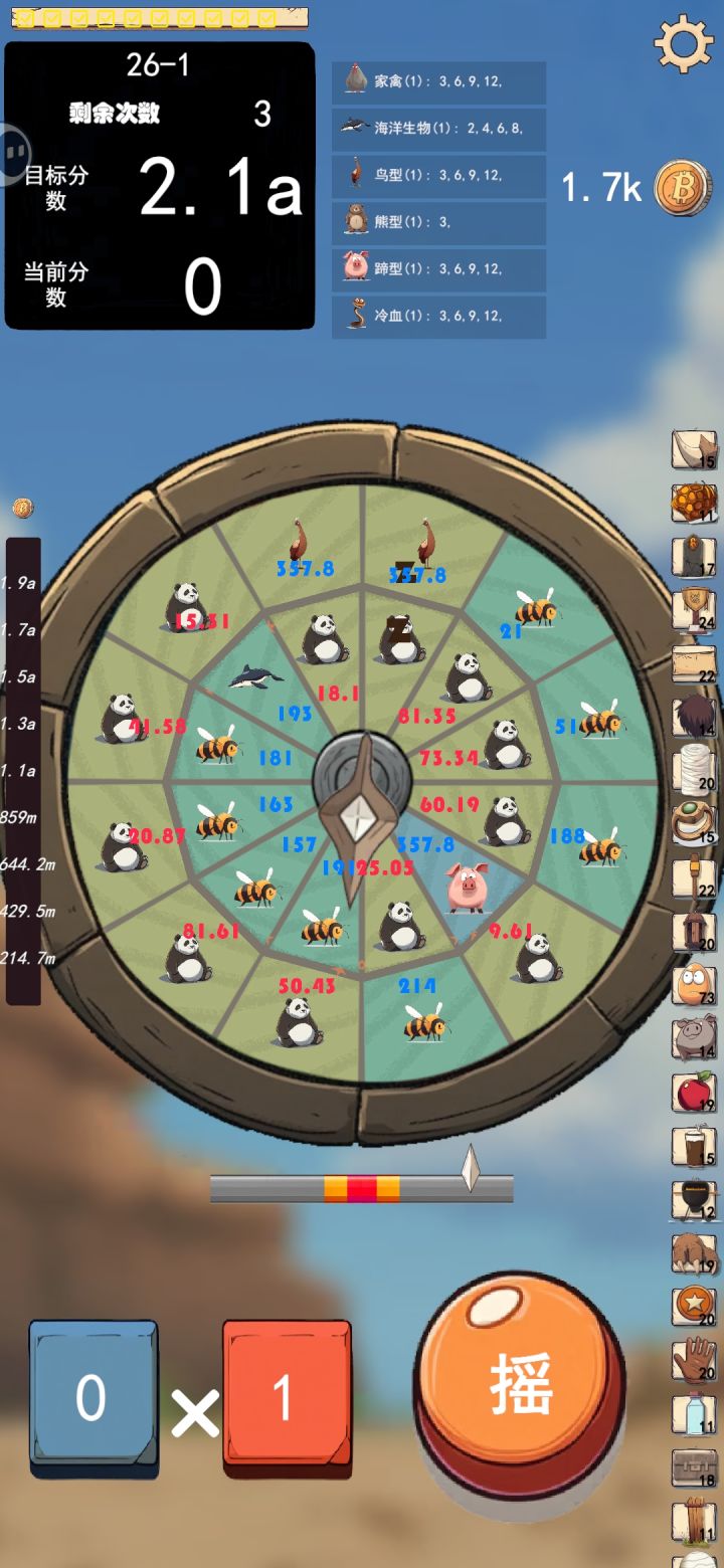 已经到头了,2.1a就是上限,已经连着4局没有增长分数要求了。(看到一堆几十万几百万就说可以随便玩的)思路是靠穿山甲翻倍基数,孔雀复制基数,然后熊类倍数增长,商店买熊类倍数增加只要脸不是太黑一直不触发穿山甲,很快就可以击穿2.1a希望坐着尽快更新数据上限吧-------------------------------------------------更新玩儿法来了,绝对是最无敌的!调