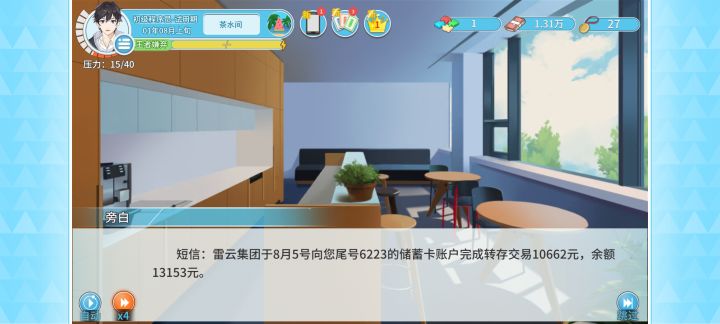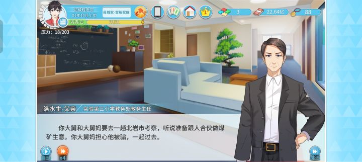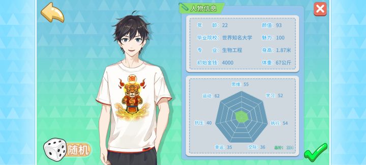 继承只点锁(开了mod,绝对的重量级选手)和四叶草,看看mod下一周目能赚多少。规划是二年底打夏州港拿第一桶金,然后尽快拿飞机场,钱够了拿全款双子。开局卖掉巧克力和铁观音换豪华套装,第一年除了学一级的编程外,其他行动力全力提属性,依次把运动力、学习力、交际力拉到110,健身格斗老家学到2级,10月没学好就11月又坐火车回了次老家,并且学了运动力加10的鲁菜套。前期事件真正有用的很少,第一年值