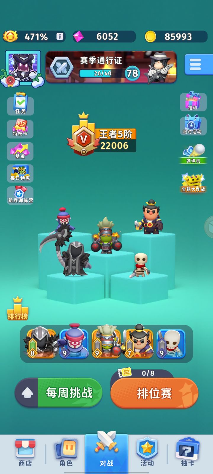 我带的是炸弹流,侠客骷髅铺场,死神和炸弹合高星,刺客带炸弹去炸对面后排,死神收割单个目标
